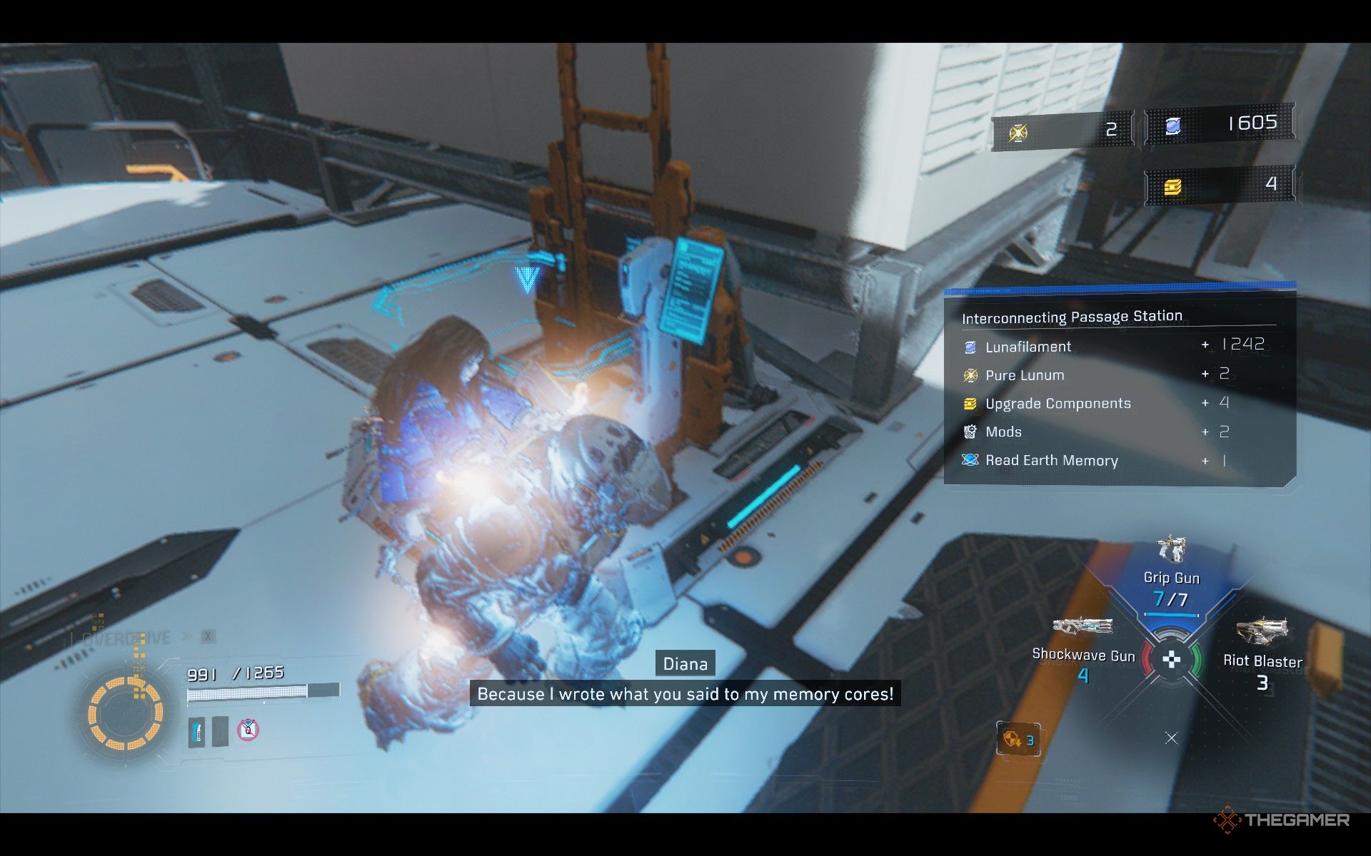 | 3 | 在有全息桌的房间里,进入带有简单黑客锁的门。让 Diana 清除这里的丝状物(Filament)并利用平台向上。到达顶部后爬上集装箱,在其中一个集装箱内寻找手办。 |