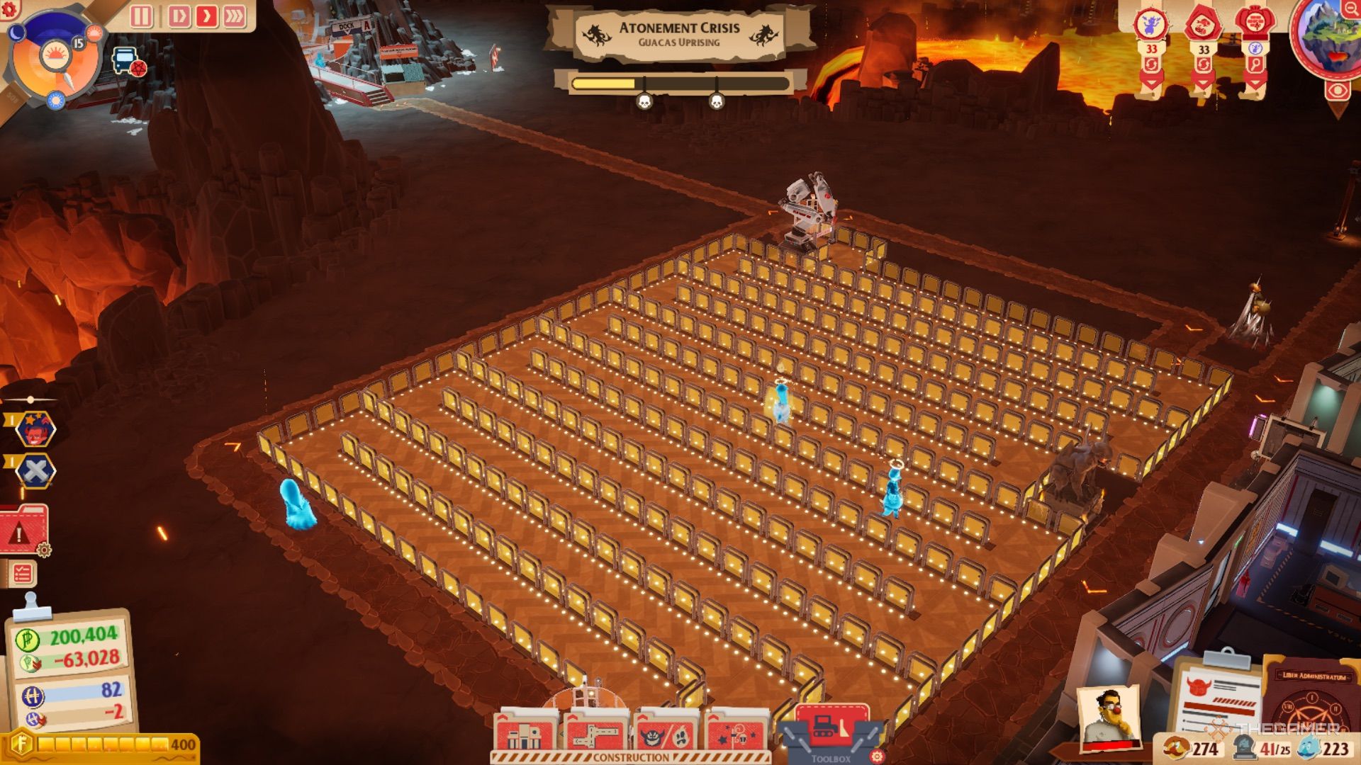 当你第一次进入 Hell Inc. 时,请尽可能缩小视角以查看整个可用空间。你可能会看到一些“炼狱地块”(Purgatiles)或“腐化地块”(Corruptiles),你可以通过沿这些地块修建路径来最大化收益,或者如果你不需要额外的罪恶值(Sin Points),则可以避开它们。