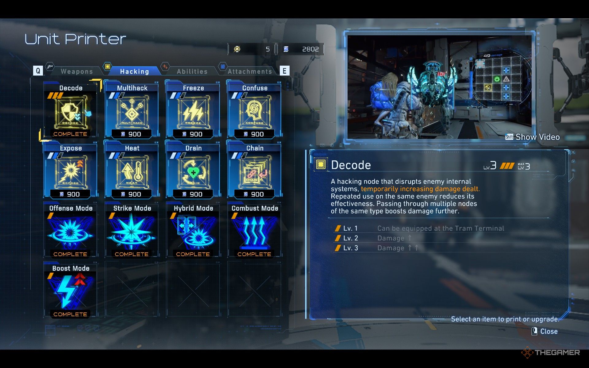 它非常适合对付那些生命值较高的机器人,比如“粉碎者(Crushers)”,它们比普通的步行者(Walkers)需要更多的破解次数。通过解码节点来叠加伤害,并对其进行升级以增加伤害总量和矩阵中的节点数量。