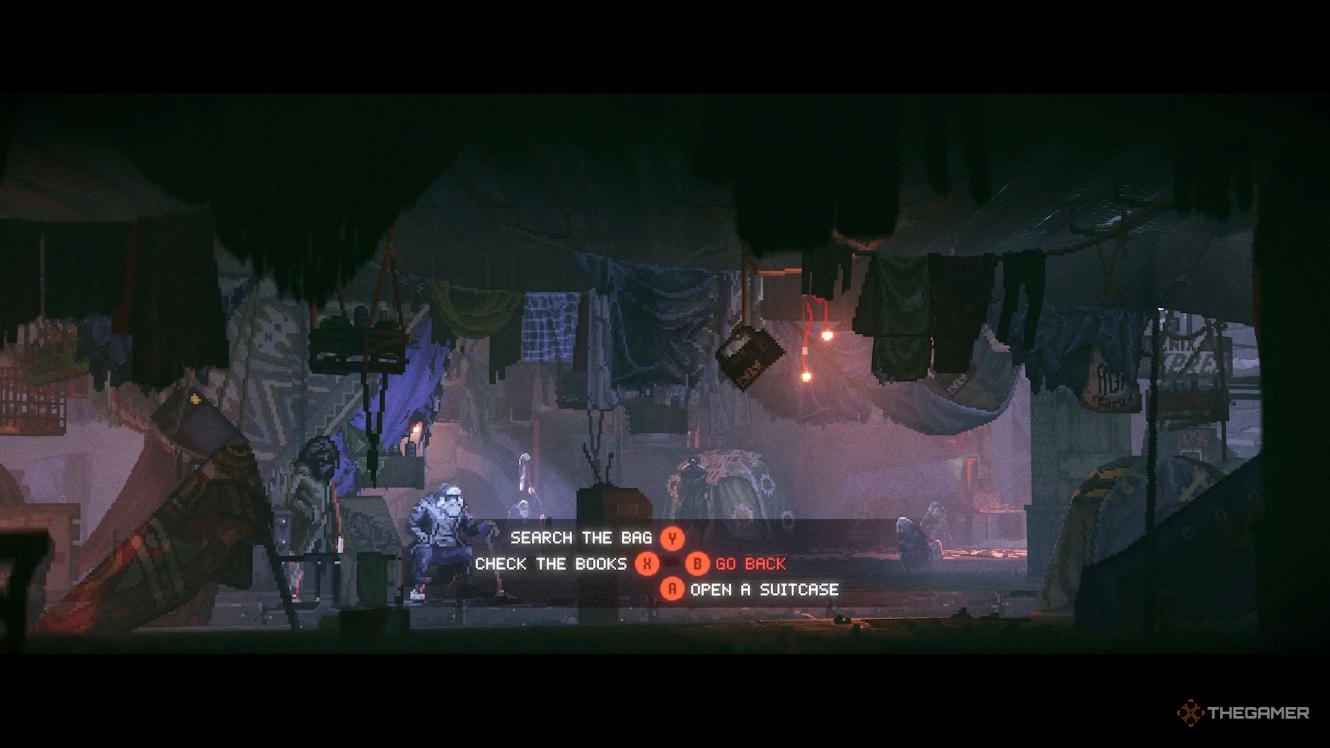 要获取密码线索,请选择“环顾四周”(Look Around)。在这里,你可以“搜查袋子”、“查看书籍”和“打开手提箱”。