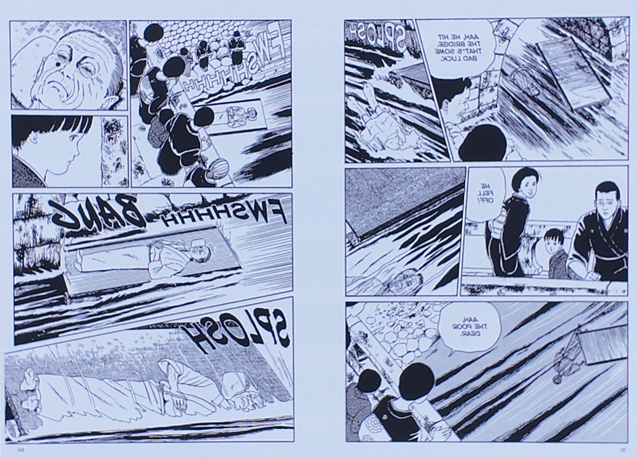 “桥”这篇故事最生动地诠释了这一点,它通过对古老村庄葬礼习俗的描写让人汗毛直竖——习俗要求将死者用草席包裹后送入海中。然而,一座桥横跨在溪流上,形成了一个障碍,导致许多死者撞向了溪流尽头的一个大池塘。叙事随之流入了一场噩梦般的审视中:过去是如何如影随形地困扰着我们,甚至让人永远无法摆脱。