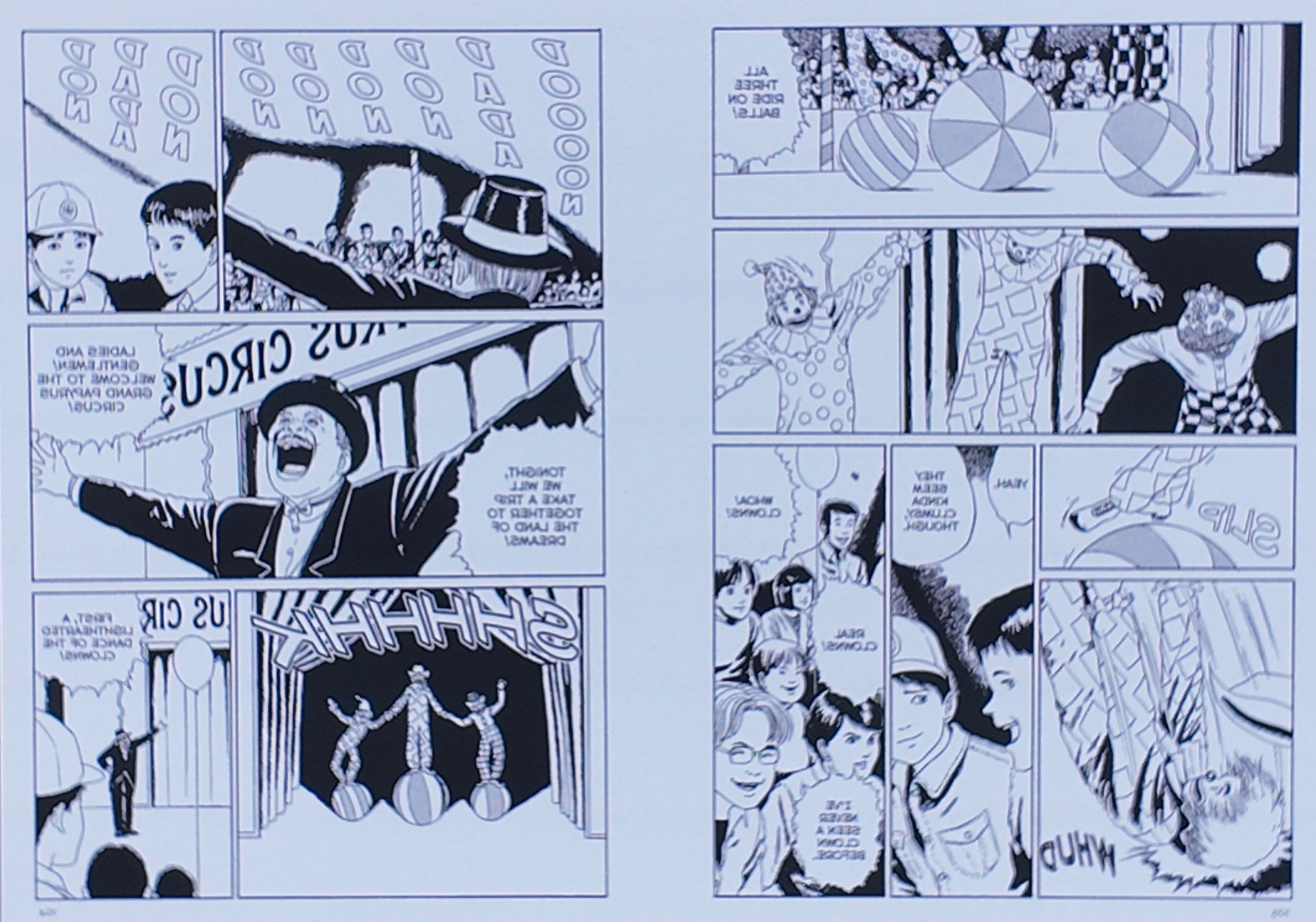 《Statues》中另一个值得关注的故事是“马戏团”,它展现了伊藤润二较为幽默的一面。顾名思义,故事聚焦于一场马戏表演,一切可能出错的事情都以一种愈发荒诞和怪异的方式发生了。你从此再也无法以同样的眼光看待太阳马戏团之类的表演了。
