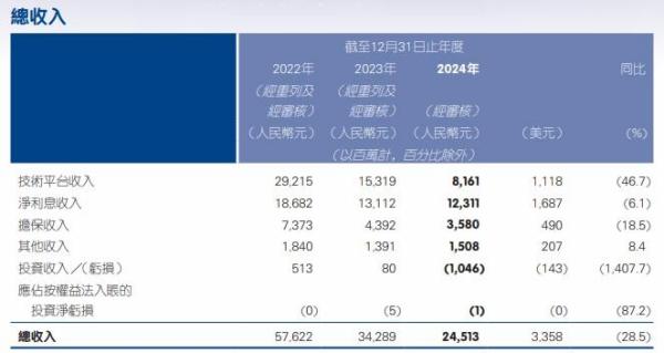 2月15日,陆金所控股发布经安永审计的2024年年报,截至2024年12月底,公司营收为245.13亿元,同比下降28.5%;归属于母公司股东的净利润亏损为38.7亿元。