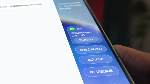 具体来看,视频中用户收到行程信息,双击导航条即可进入侧边态 AI 模式,一键识别屏幕内容并自动添加待办,同步推荐打车、交通查询等服务;工作通知变更时,AI 自动刷新临期待办,智能同步行程与任务;阅读文章时,选中关键词即可触发AI深度问答,边浏览边学习、边获取信息边拓展知识。这种“无感触发、主动服务”的交互逻辑,将AI助手从工具属性升级为伙伴属性,让智能服务真正融入用户每一个使用瞬间。