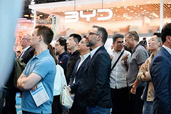 展会现场人气火爆,众多车圈、科技界企业家齐聚,与比亚迪董事长王传福交流行业发展;宁理、王志飞、聂远、杨澜等演艺明星也纷纷亮相展台,为品牌助力。同时,大量海外观众与国际媒体驻足体验,纷纷点赞比亚迪产品与技术。