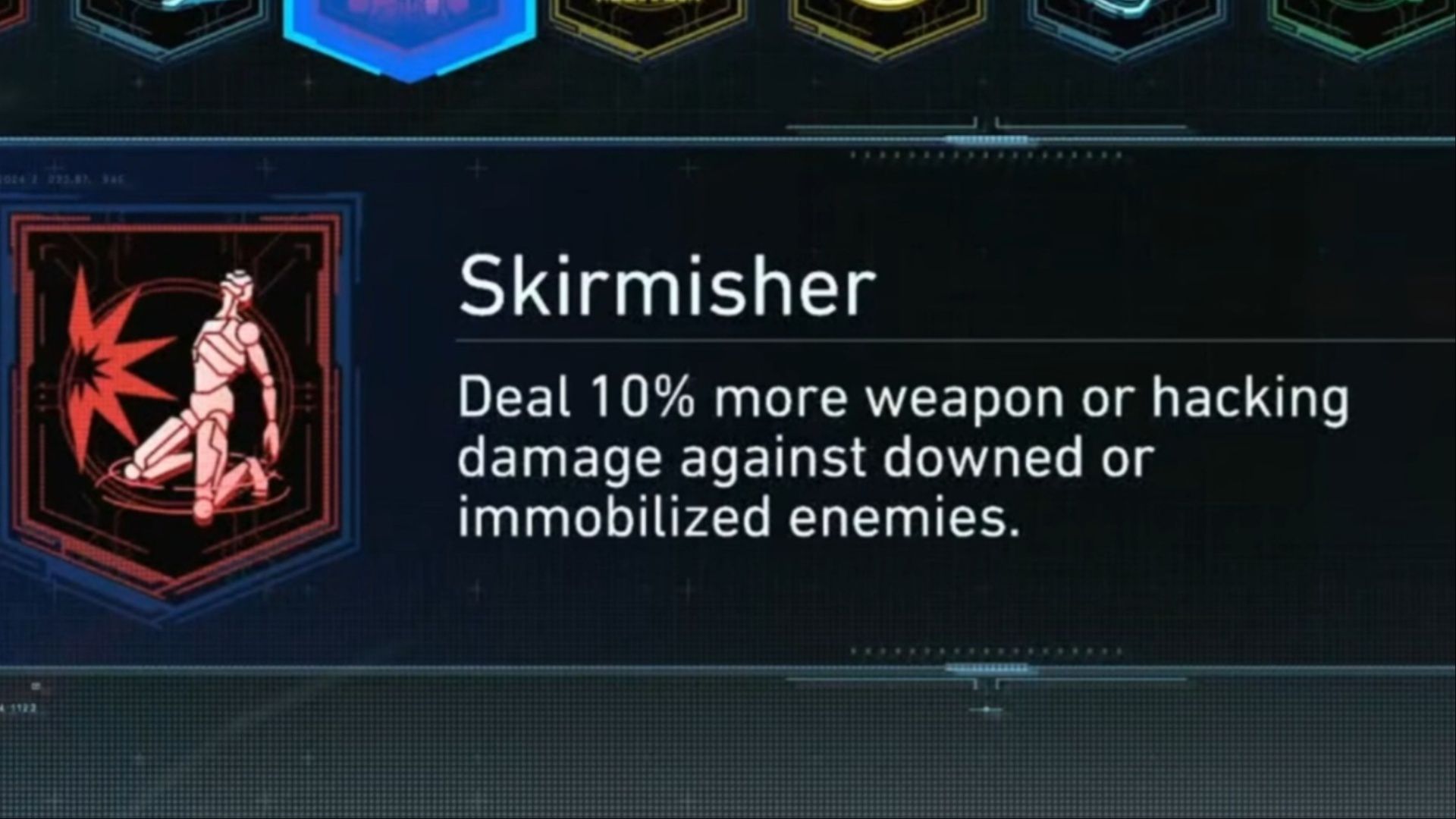 “散兵游勇”模组进一步强化了针对倒地敌人的输出,能对倒地目标额外造成 10% 的武器或黑客伤害。它与上述模组相辅相成,叠加后总计可提供高达 30% 的攻击加成。
