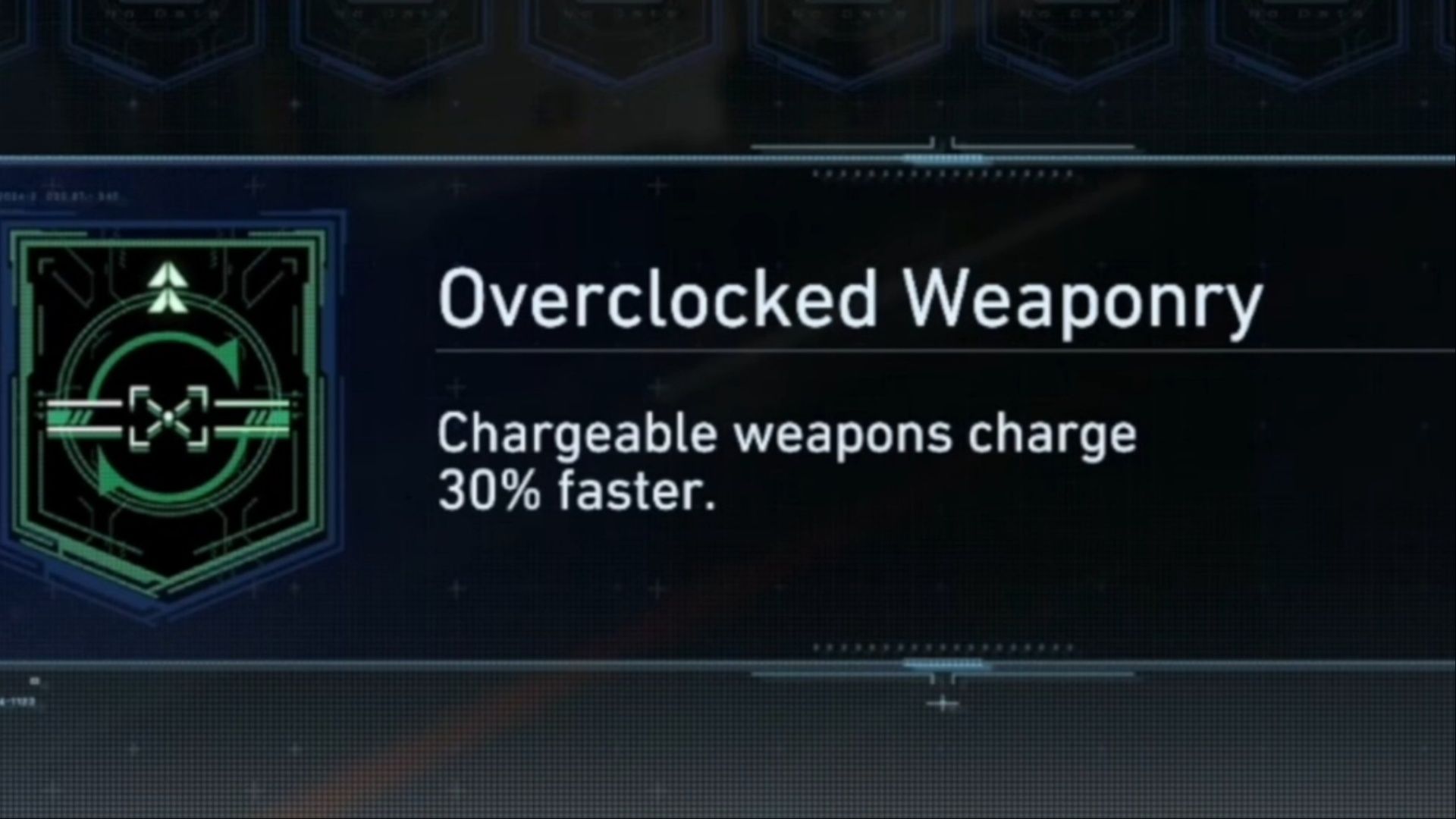 “超频武器”模组可以将所有蓄力型武器的蓄力速度提升 30%,让你能更快地释放毁灭性的能量攻击。将这个辅助模组与前两个模组搭配使用,你几乎可以横扫战场。