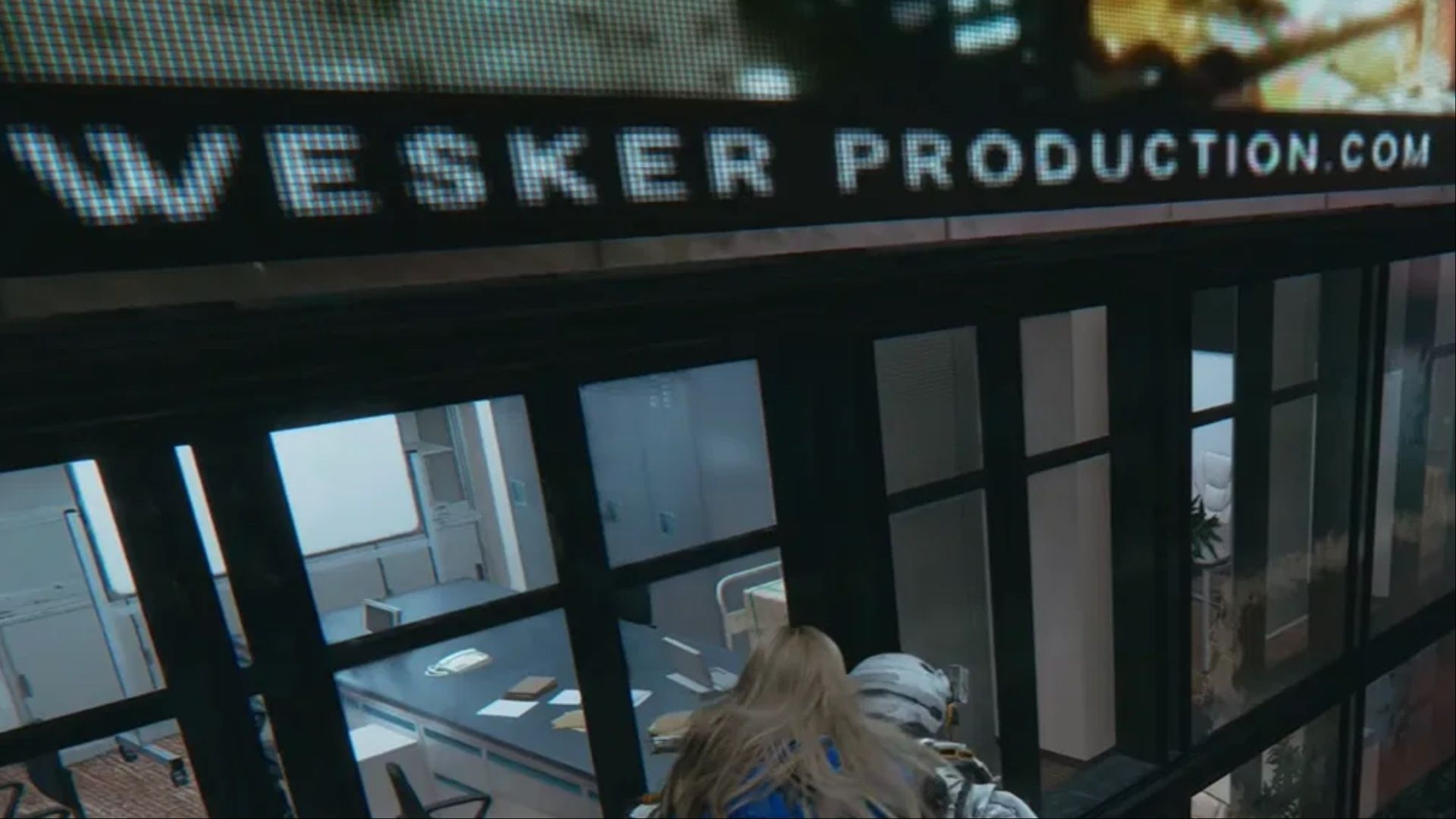 什么?在 Pragmata 里还有关于 生化危机4:重制版 的彩蛋和致敬?!当然有,而且这个彩蛋很容易被错过,因为它位于游戏“大规模生产阵列”区域中令人惊叹的时代广场区域的一块滚动广告牌上。在宏伟的通讯塔附近,你会看到一个滚动显示“Wesker Production”网站文字的广告。