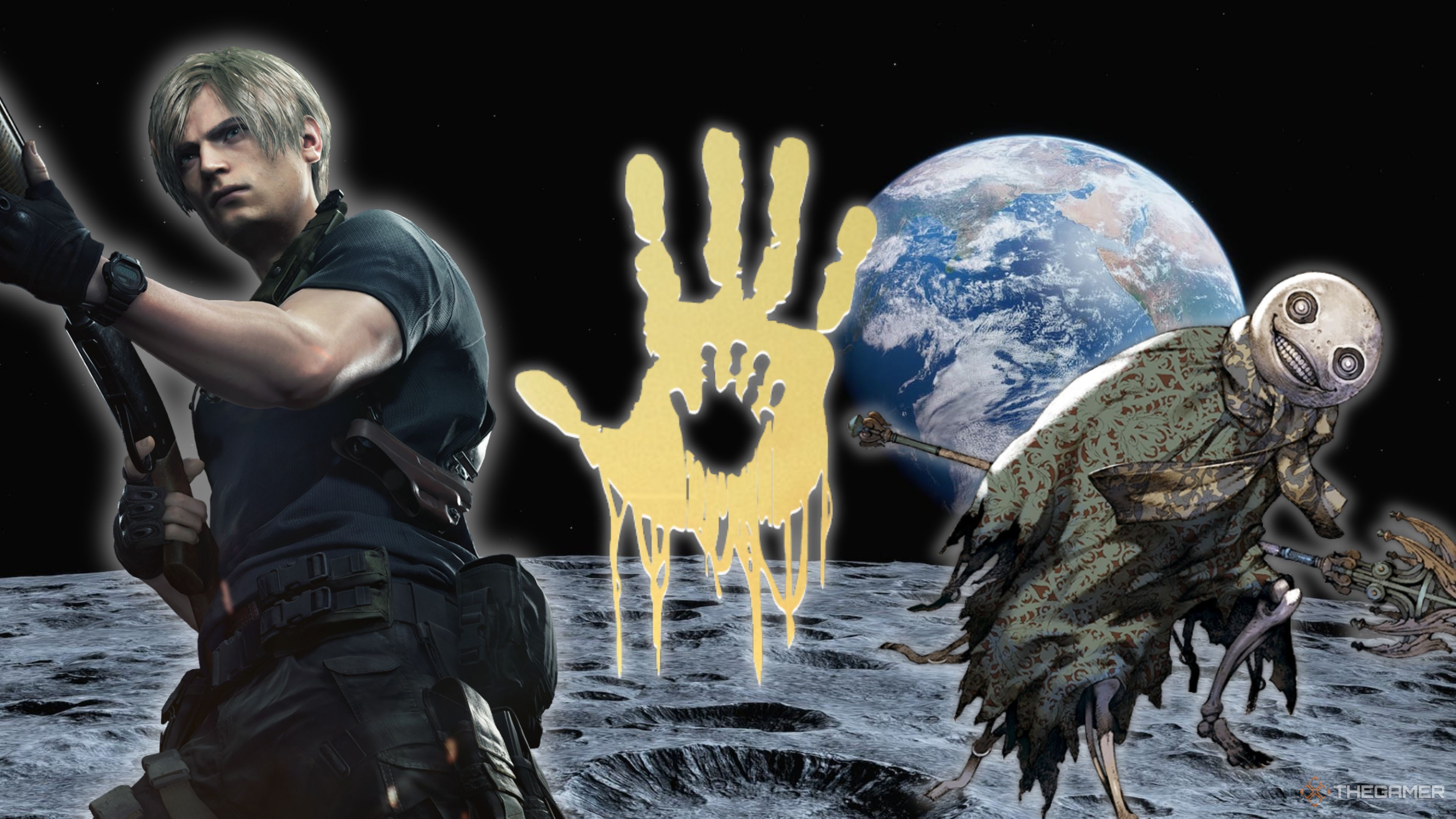 然而,更敏锐的观察者会注意到,背景中的角色正站在尸体和骷髅堆上,挥舞着他那把可靠的霰弹枪。没错,这张海报的封面艺术清晰地致敬了标志性的 末日黎明 / DOOM Dawn 系列,融合了原版 末日黎明 / DOOM Dawn 封面和 末日黎明 / DOOM Dawn 2016 封面艺术的元素。Capcom 致敬 id Software 确实在我们的意料之外,但我们很乐意接受!