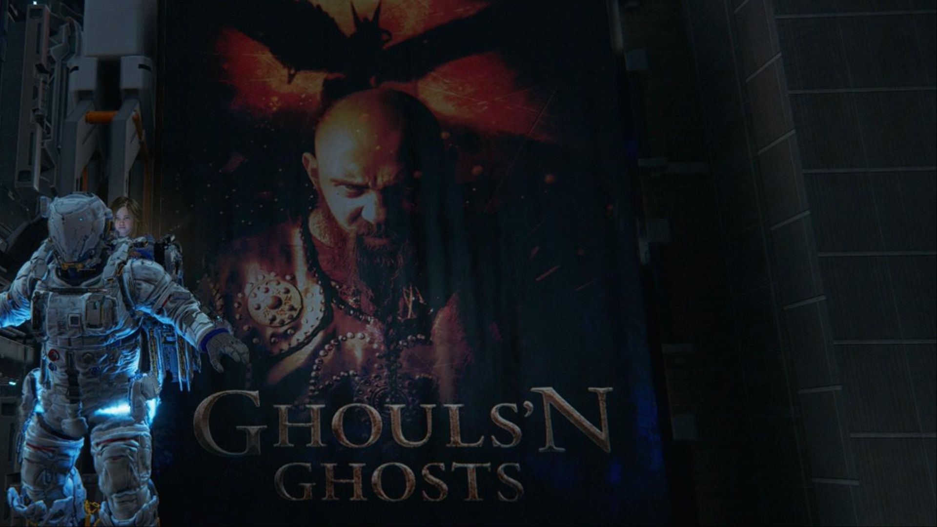 接下来是一个最出人意料的致敬,可以在商业区发现。那里有一张巨大的电影海报,上面写着“Ghouls 'n Ghosts”,这直接致敬了 Capcom 的同名游戏,也就是 Ghosts 'n Goblins 的续作。