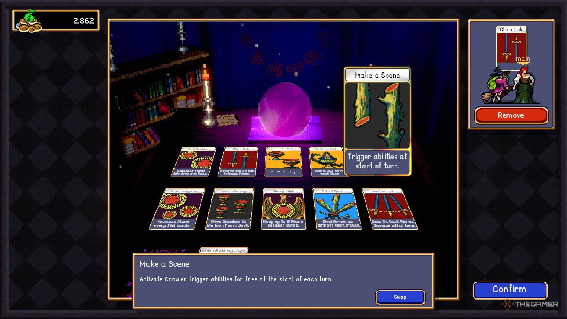 Arcanas 在 吸血鬼幸存者 中曾是一个核心机制,如今它们在 Vampire Crawlers 中回归了。这些特殊的卡牌能为你提供独特的被动效果,并持续整场游戏。其中一些能让你在回合间保留护甲,另一些则能增加你的总法力值,或让你以全新的方式造成伤害。