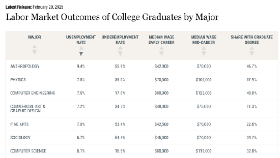 这场AI军备竞赛的代价,已经从企业的财务报表传导到了高校和就业市场。曾经最热的计算机专业,正在成为最难就业的学位。