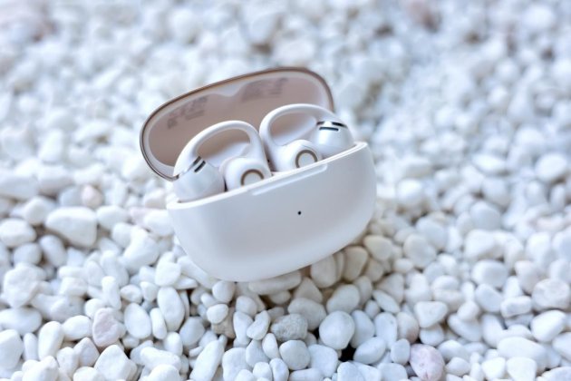 我拿到的是主推色‘白金缮’,第一眼就被它的质感戳中。耳机表面采用七涂七烤锻光工艺,白色珠光自带天然贝母般的温润光泽,搭配充电盒上的金色圆环,质感细腻,戴在耳朵上更像一件精致配饰。搭配通勤西装、运动卫衣,还是戴着眼镜、帽子,耳夹的设计都不会冲突,反而像给穿搭加了个低调的点睛之笔。